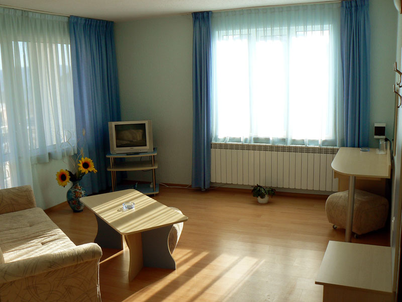 На разположение на гостите са 4 апартамента (хол и спалня), Всички апартаменти са оборудвани със самостоятелен санитарен възел, кабелна телевизия и мини-бар.